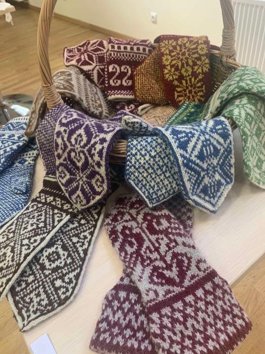 2023 m. Raudondvario menų inkubatoriuje vykusioje parodoje ''Kalbantys raštuose'' buvo eksponuojamos pirštinės.