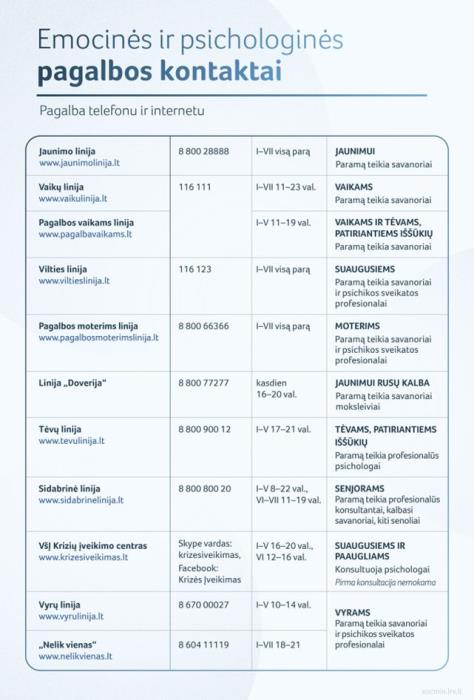 🔹Emocinės ir psichologinės pagalbos kontaktai Lietuvoje ir Kauno rajone