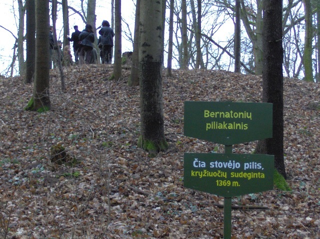 Pasiekiamas iš Raudondvario–Babtų kelio pasukus į Bernatonis, prieš pat Bernatonis – į dešinę (P) 500 m lauko keliuku (yra kairėje (PR), 100 m nuo miško krašto, ties lauko PR kyšuliu). Bernatonių piliakalnis įrengtas trijų upelių santakoje, kranto kyšulyje, Kauno miškų urėdijos Raudondvario girininkijos miško 175 kvartalo vidurinėje dalyje. Iš ŠR ir P piliakalnį supa upelių slėniai. Šlaitai statūs – 36–38 m aukščio. Viršuje yra 35 m ilgio R–V kryptimi ir iki 30 m pločio V gale aikštelė, kuri žemėja R kryptimi. Spėjama, kad piliakalnyje stovėjo metraštininko Kaspero Šiuco minima 1369 m. kryžiuočių sudeginta Kęstučio pilis „Bayery“. Datuojamas II tūkst. pr.