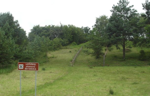 0,8 km į š. r. nuo Lepšiškių piliakalnio, 0,45 km į š. v. nuo Kauno–Žeimių kelio ir 0,1 km į r. nuo Margupio kair. kranto. Piliakalnis įrengtas atskiroje, Margupio kair. krante esančioje kalvoje. Iš š. ir r. piliakalnį juosia gilūs mišku apaugę slėniai, iš v. – Margupio slėnis, iš p. – žemuma. Piliakalnio šlaitai gana statūs, iki 15 m aukščio. Viršuje yra 20 m ilgio š.–p. kryptimi ir 10 m pločio aikštelė. Datuojamas I tūkst